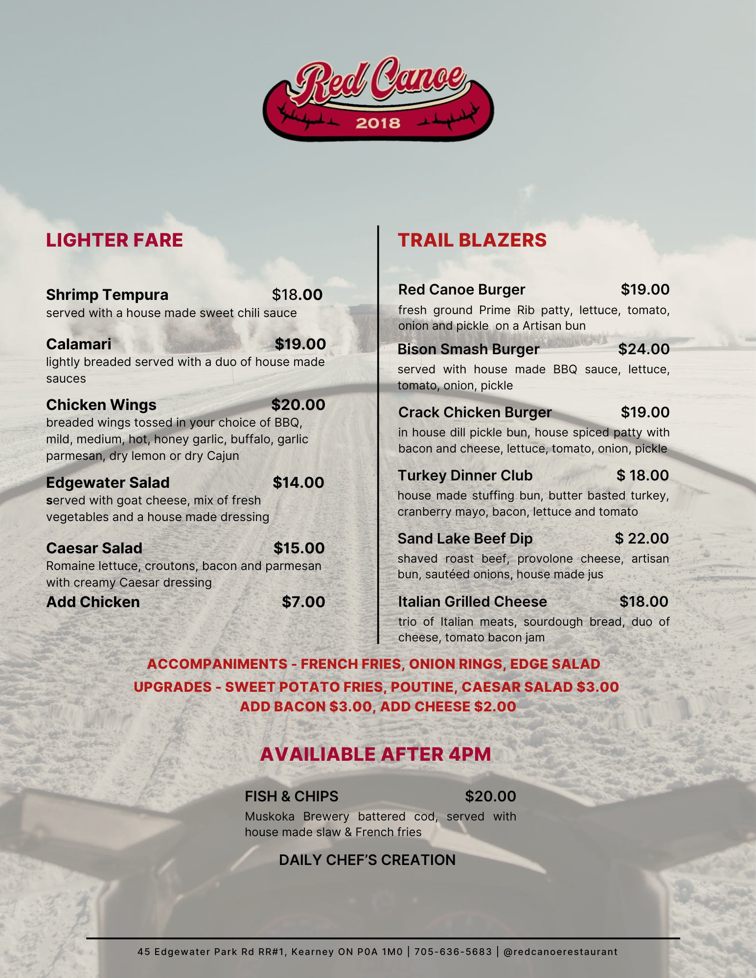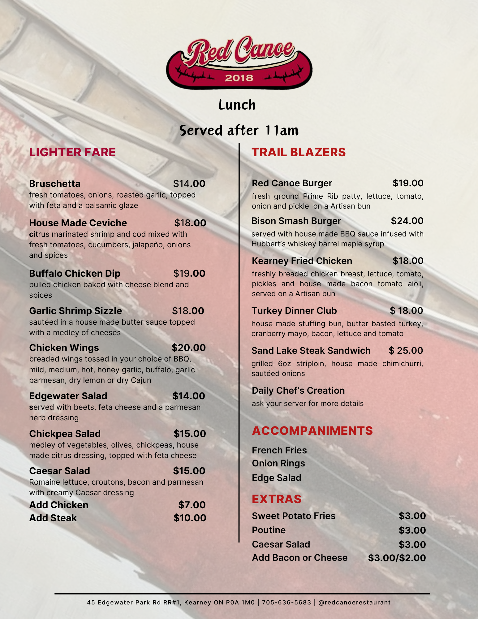 Located on beautiful Sand Lake, Red Canoe Restaurant is a fantastic setting to enjoy the view while having great food and drinks!